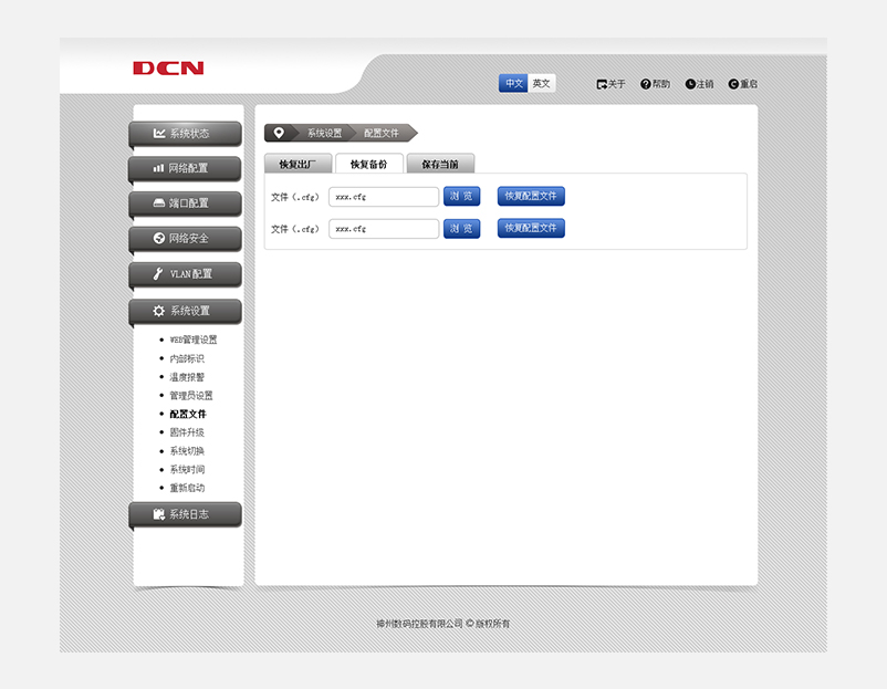 神州数码DCN项目是一个嵌入式的硬件开发项目。 公司为北京神州数码公司提供的数据交换机这一硬件产品进行的管理系统开发服务。该系统的用户是数据交换机使用者的管理人员,主要功能是实现各种策略与配置,特点是操作简单易用。 为了便于用户使用,该系统以传统界面为主,便于用户接受。在操作流程的设计上,依照操作的步骤进行整合,最大化实现用户的操作便捷性。