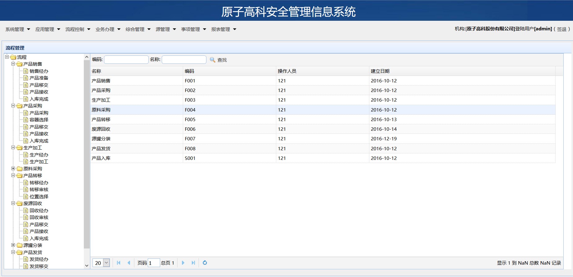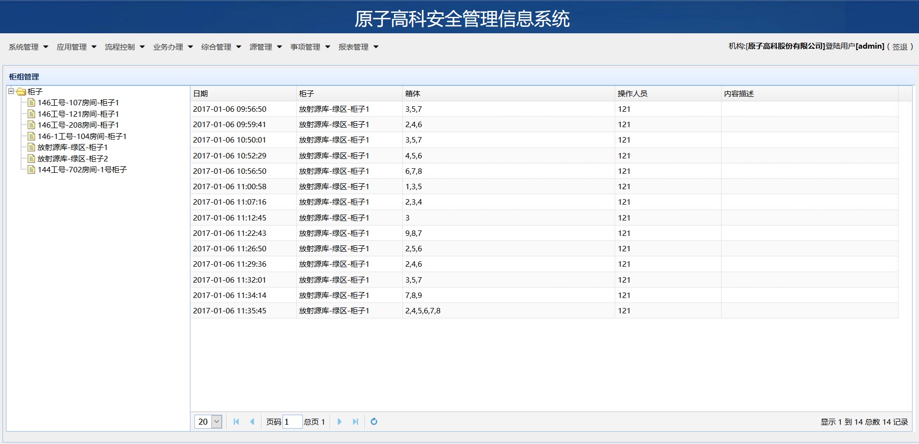 放射源全周期安全管理系统是永旺融合公司基于核材料和放射源在工业生产和民用领域存在滥用、不规范的情况,严格执行环保部核安全管理规范要求,保障放射源在生产、运输、使用、回收、监管全生命周期中管理有效、监管有序、责任明确、事后可查为目的,实现组织对放射源的全生命周期流程控制、跟踪管理与统计分析等核心功能而开发的一套综合管理系统。放射源全周期安全管理系统从放射源源罐、柜组、地坑、运输轨迹监控、流程审批、人员安全管理、放射源属地监控(定位示意图)、放射源统计分析等多个方面,深度提升对核放射源产品全周期的安全管理。 放射源全周期安全管理系统分为八个核心功能模块,实现系统在进、销、存、运输、人员健康、流转交接等全周期的管理功能。这八大模块分别是: 系统管理模块、 应用管理模块、 流程控制模块、 业务办理模块、 综合管理模块、 源项管理模块、 事项管理模块和报表管理模块。